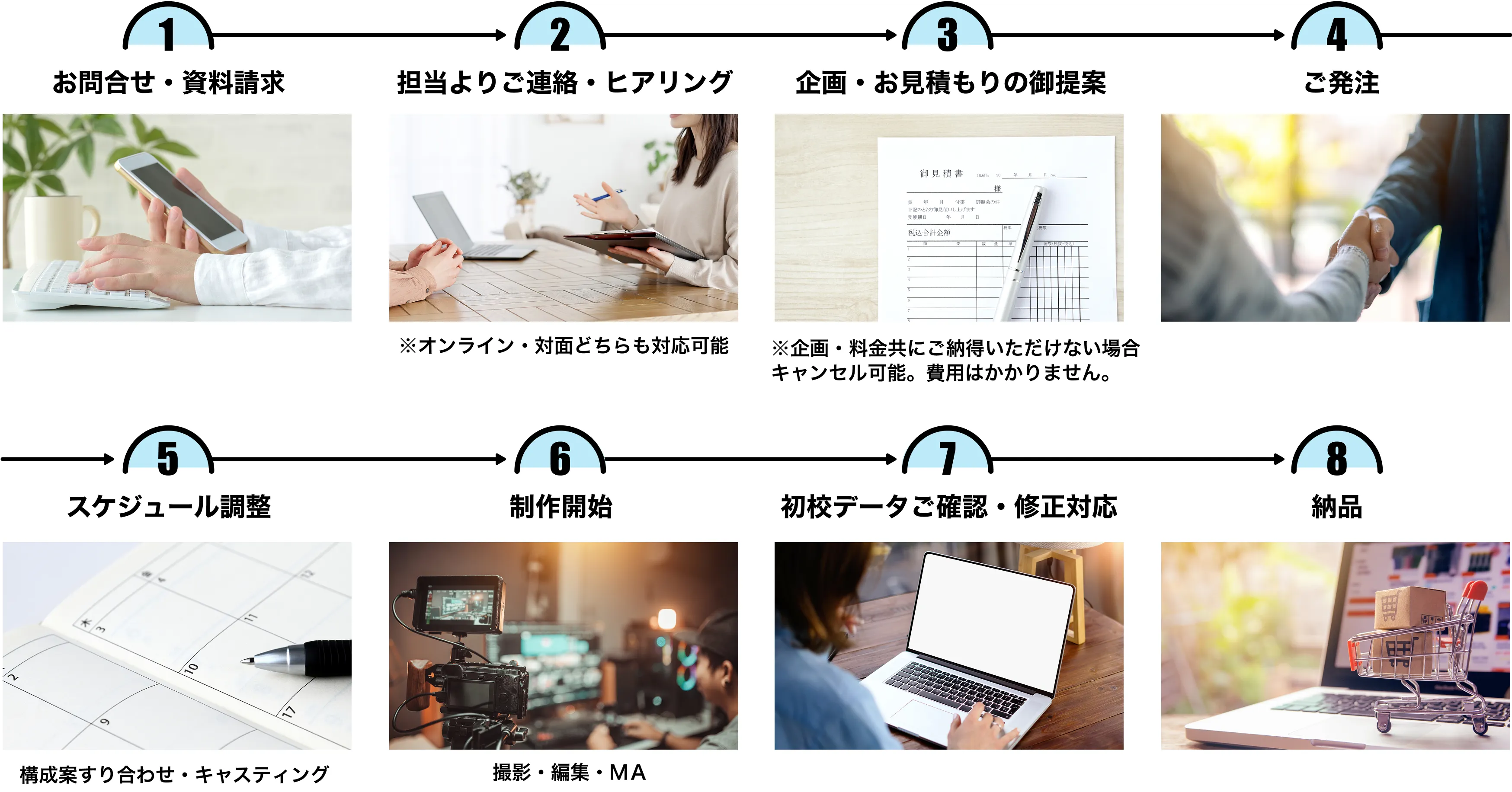 企画のご提案から撮影、編集・仕上げまで、同じスタッフが一貫して対応いたします。